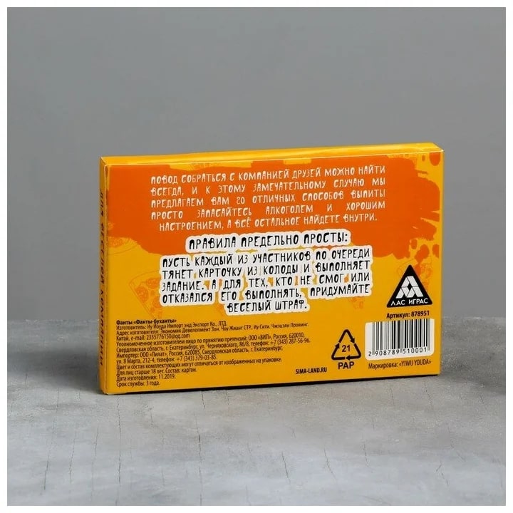 Купить игра для компании "фанты буханты" 20 карт от 100 руб. с доставкой до пункта выдачи в Копейске. Интернет магазин ДекаМаркет. Оплата при получении.